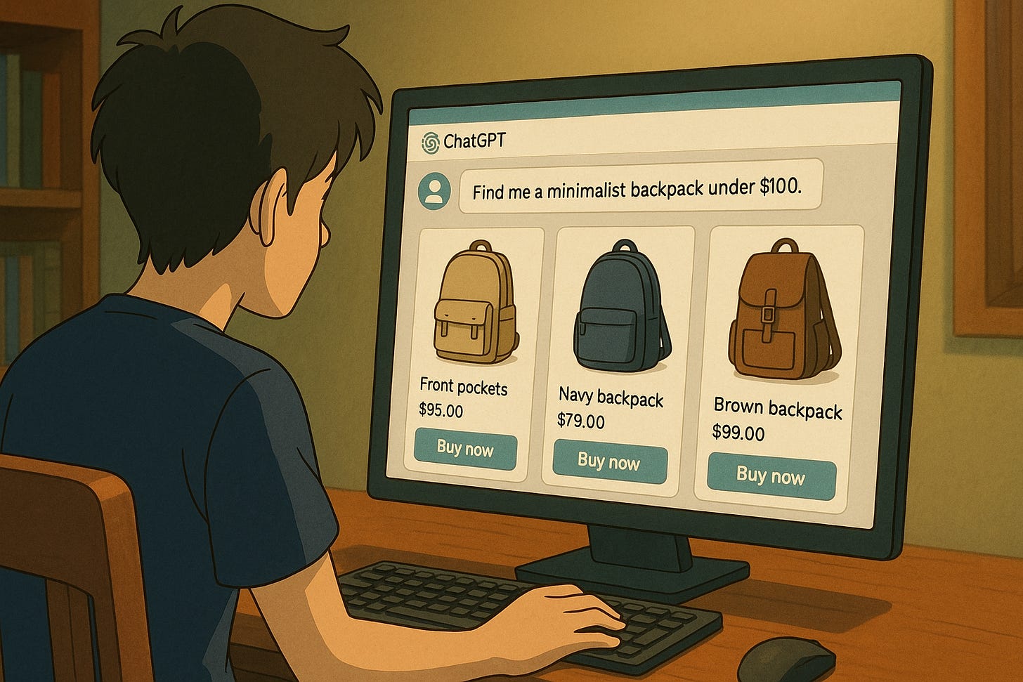 Khách hàng: "Tìm cho tôi một chiếc balo tối giản dưới 100 đô."